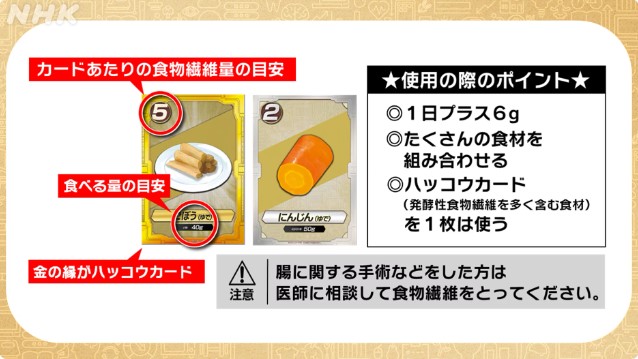 ハッコウカード(発酵性食物繊維を多く含む食材)を1枚は使う